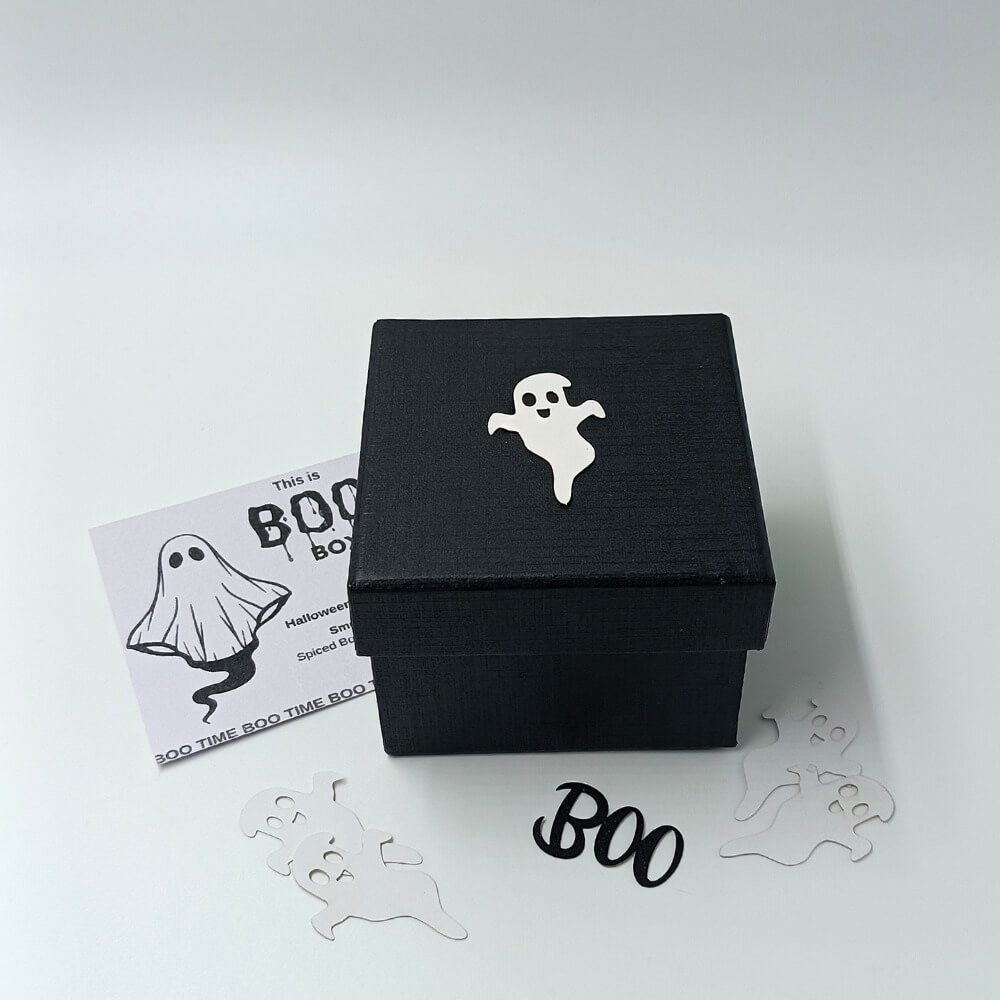 Μέσα στο μαύρο κουτί με το μήνυμα BOO!!!, θα ανακαλύψεις 15 μικρά φαντασματάκια από wax melts, που λιώνουν αργά και γεμίζουν τον χώρο με το ζεστό, γλυκό άρωμα Spiced Bourbon Pumpkin. Ένας μοναδικός συνδυασμός καραμελωμένης κολοκύθας, μπαχαρικών και βανίλιας bourbon.