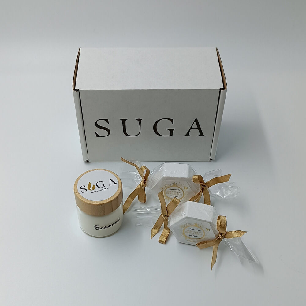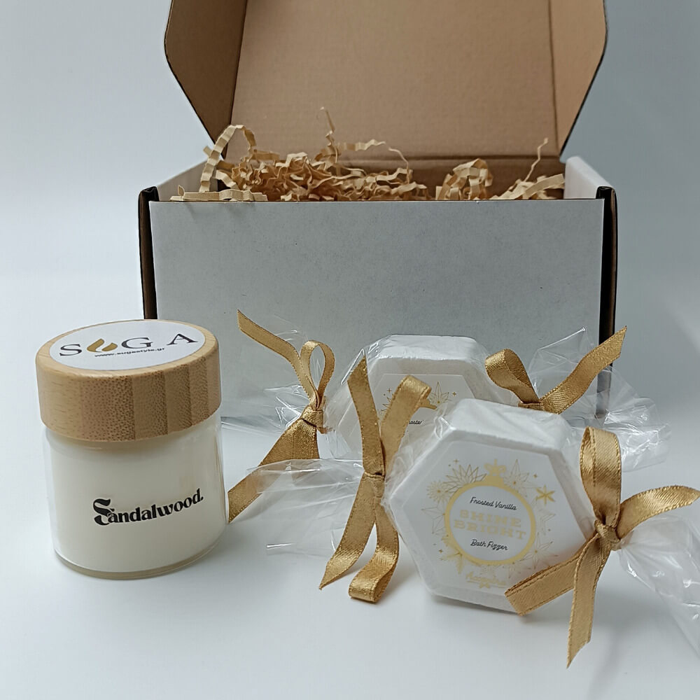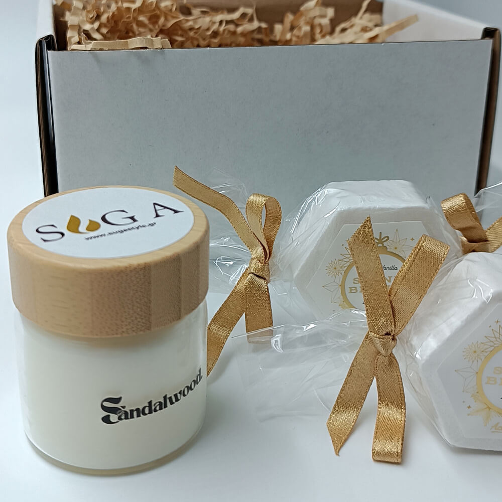Δώρο Σετ Κερί Σανδαλόξυλο & Bath Fizzers | Suga Box