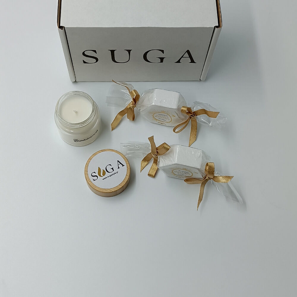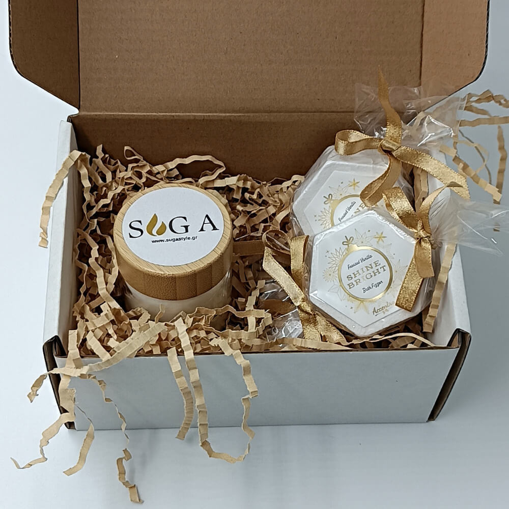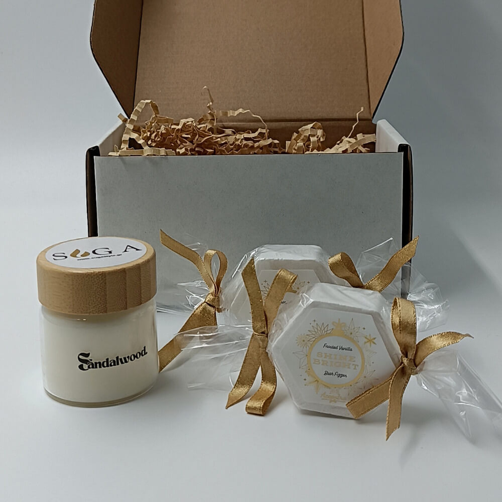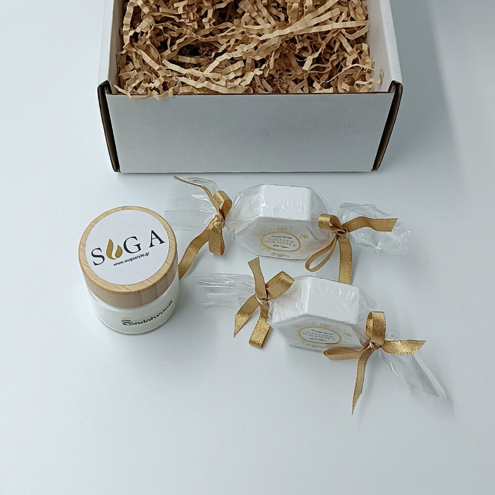 Δώρο Σετ Κερί Σανδαλόξυλο & Bath Fizzers | Suga Box