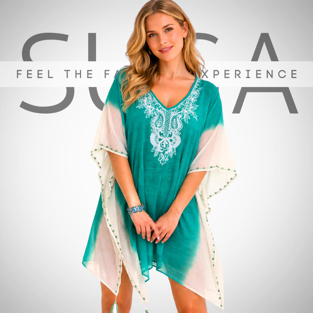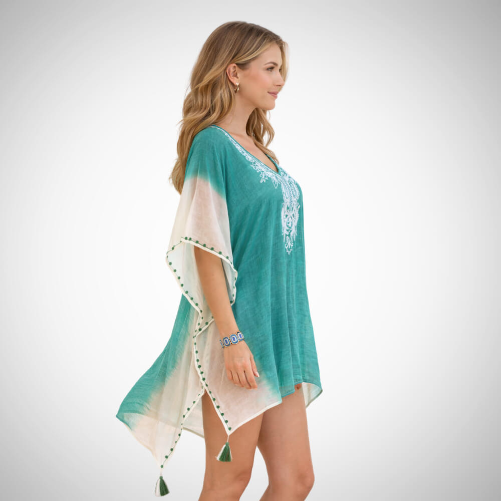 Καφτάνι παραλίας γυναικείο με κέντημα και φουντάκια | Suga Style