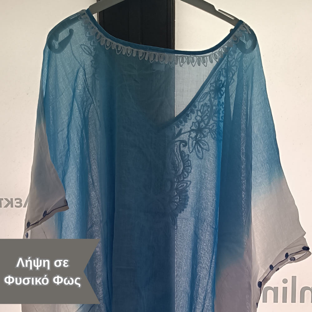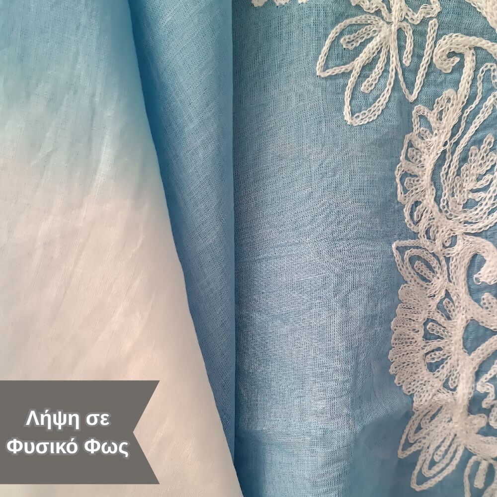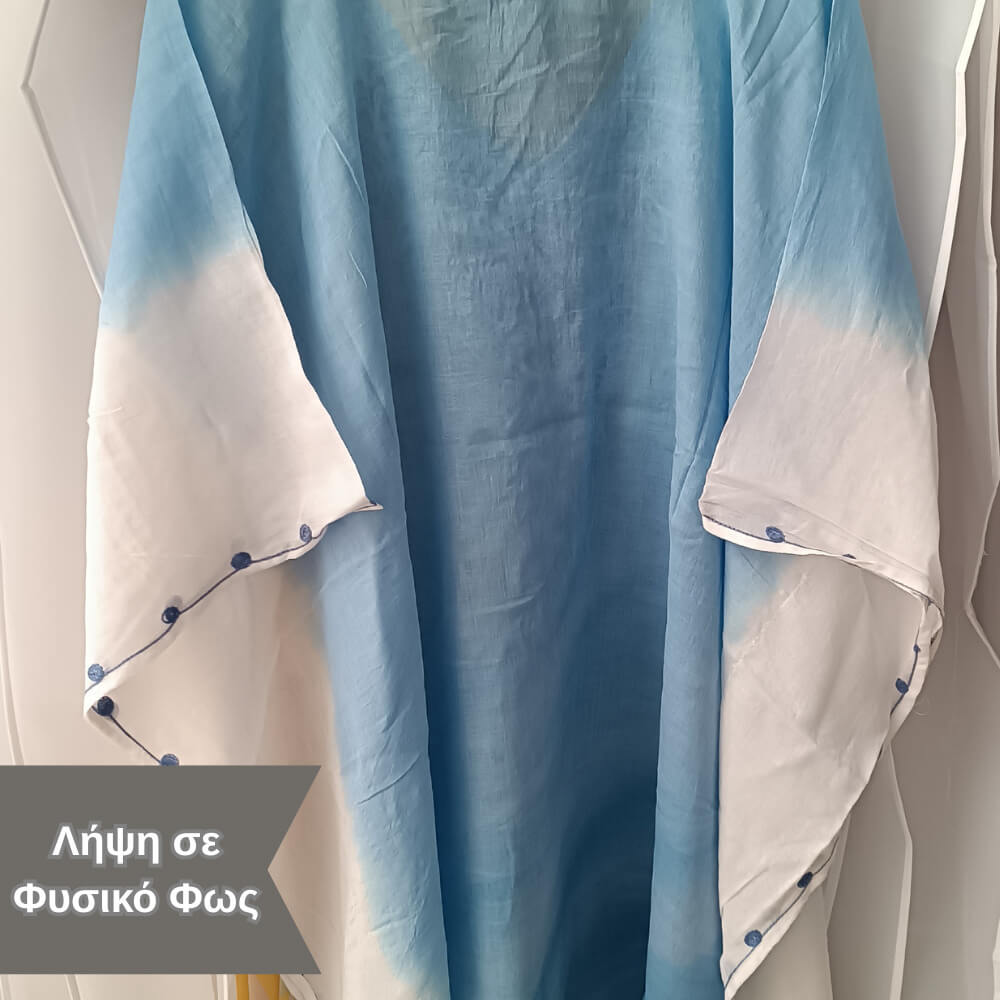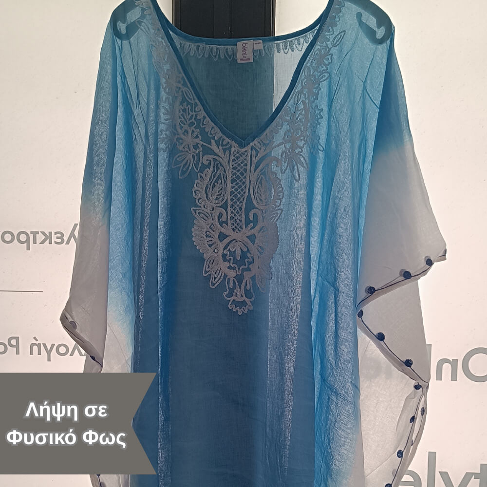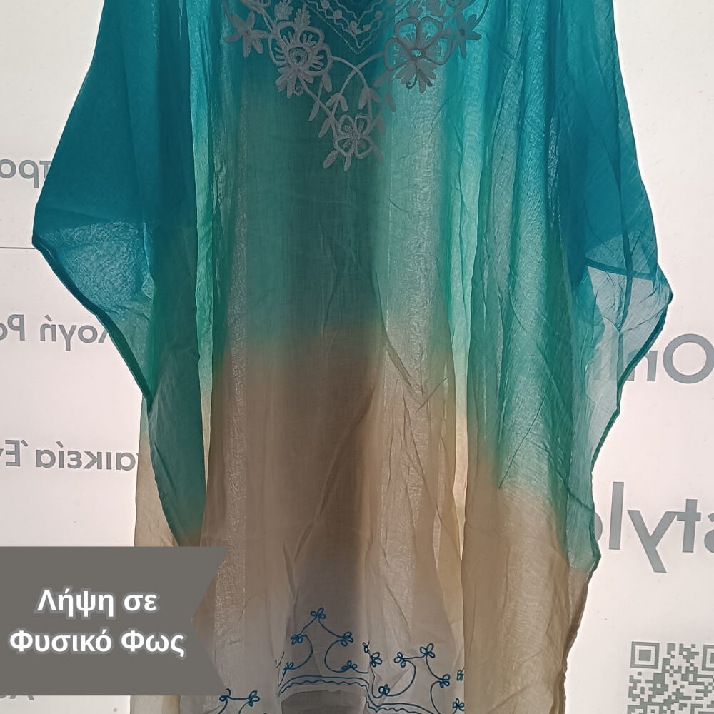 Το ιδιαίτερο κέντημα στο μπροστινό μέρος προσθέτει μία boho αισθητική, ενώ τα διακριτικά φουντάκια στο τελείωμα δίνουν κίνηση και στιλ σε κάθε σου βήμα. Η loose γραμμή του αγκαλιάζει το σώμα χωρίς να περιορίζει, προσφέροντας δροσερή αίσθηση ακόμα και τις πιο ζεστές μέρες.