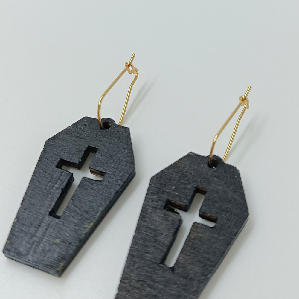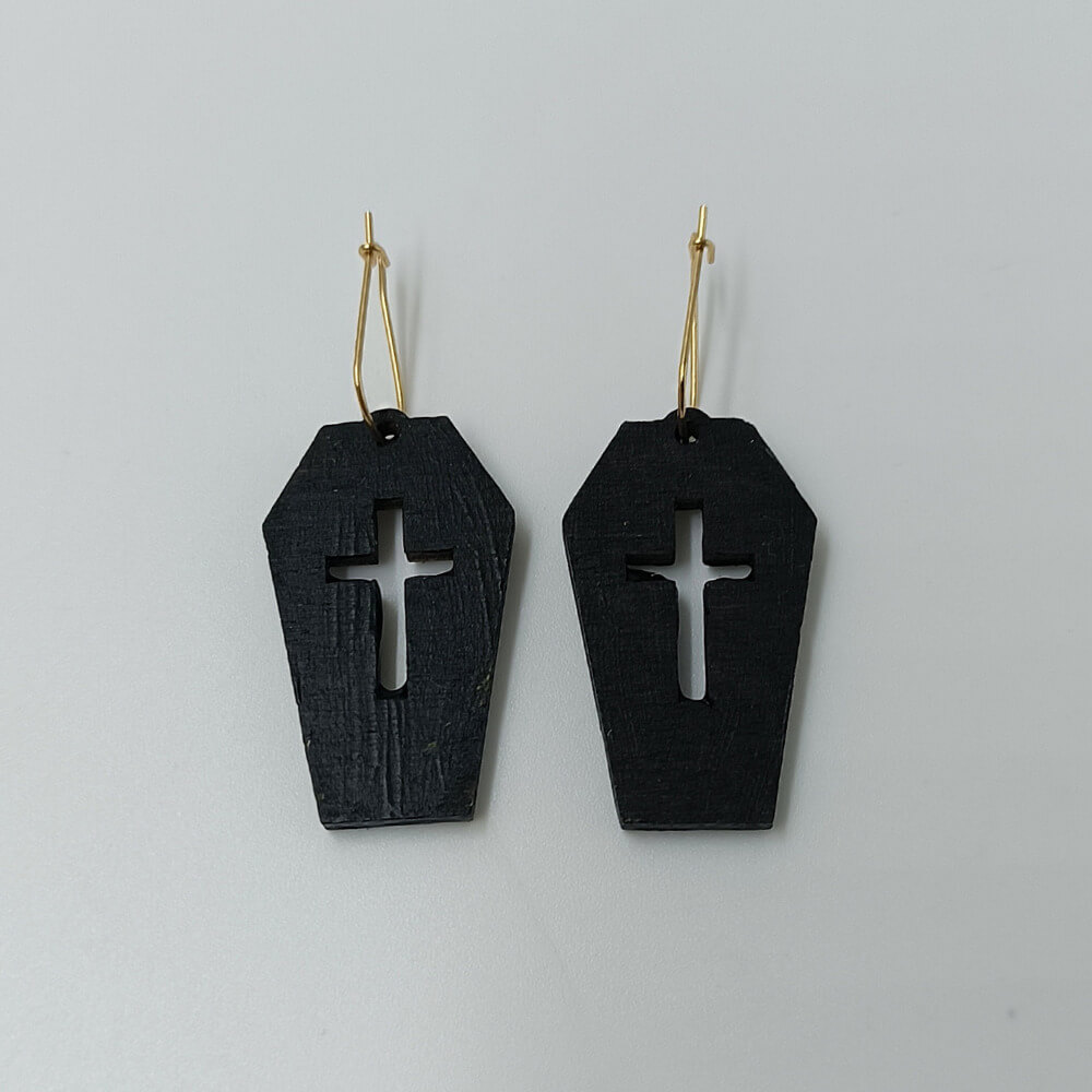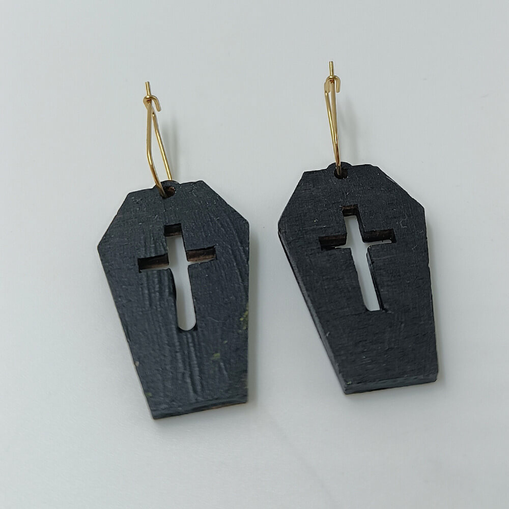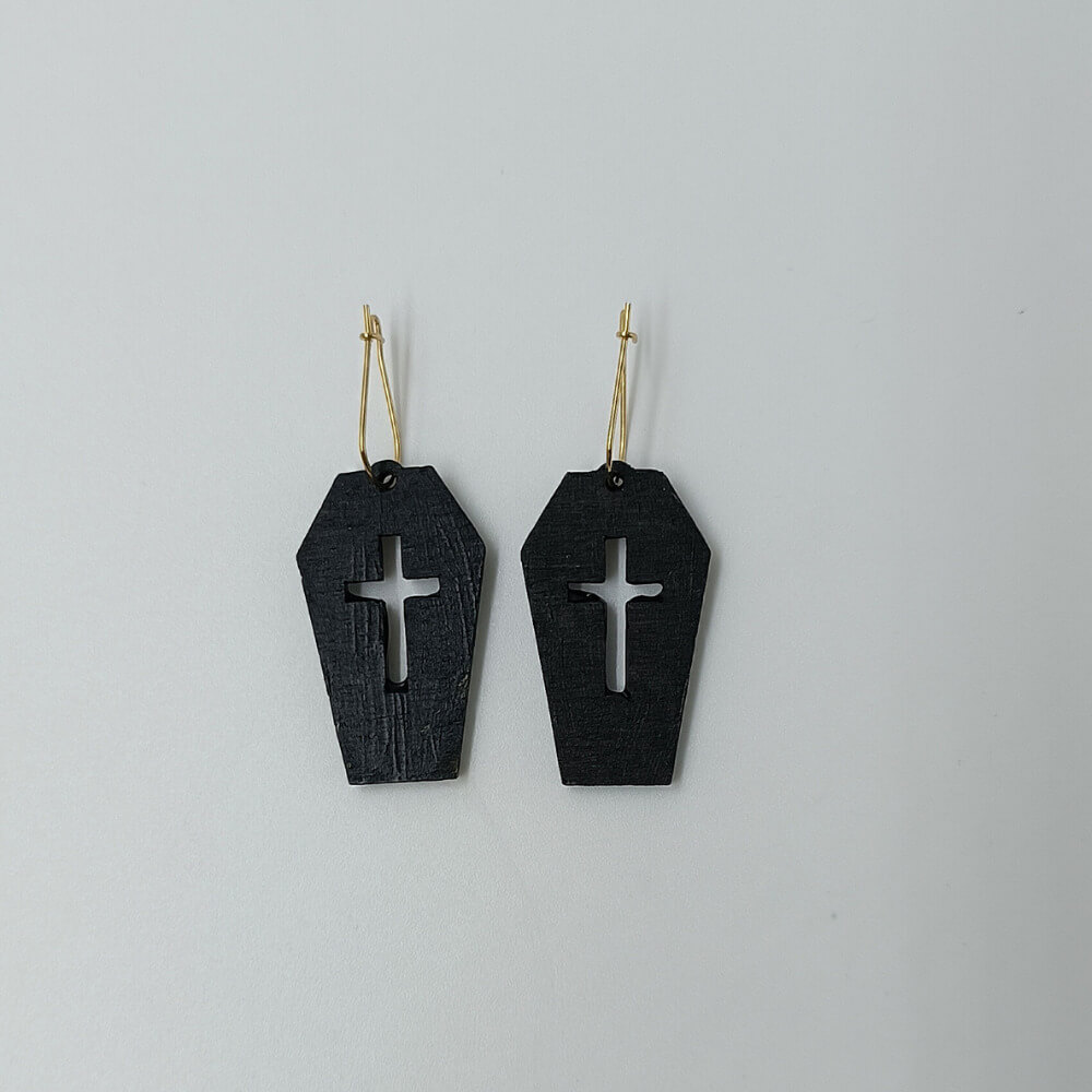 Σκουλαρίκια μαύρα ξύλινα φέρετρο με χάραξη σταυρού | ToXylo