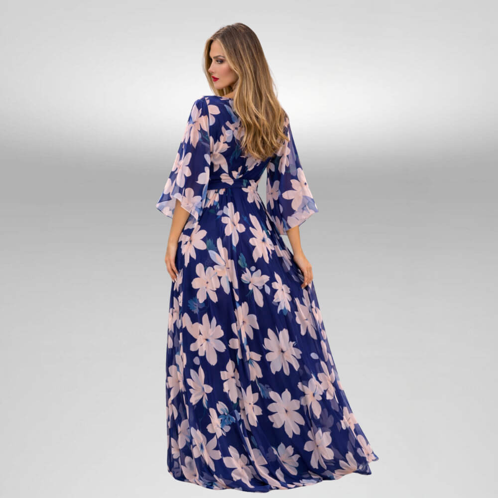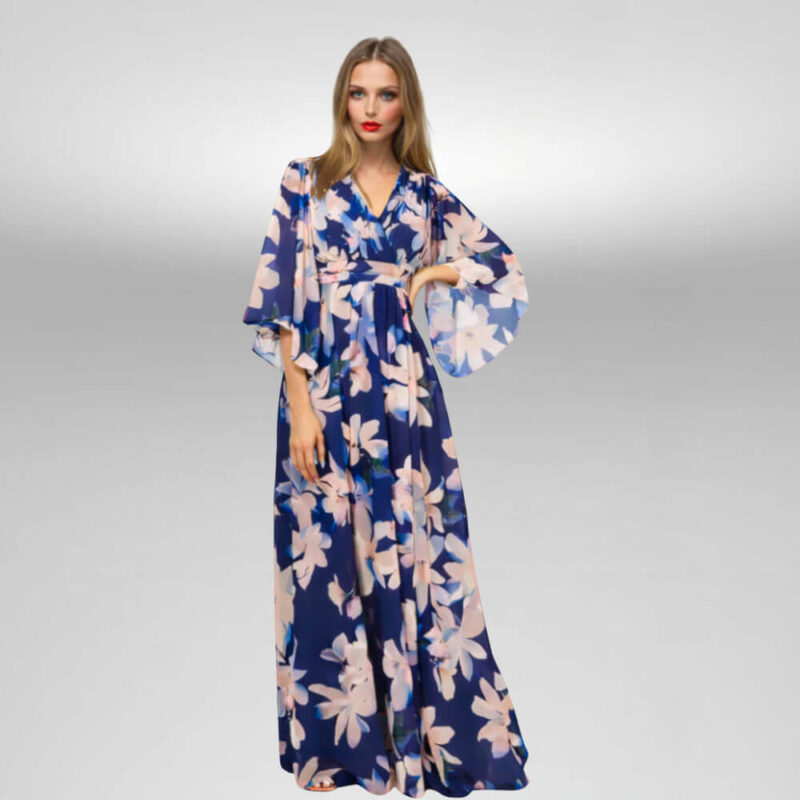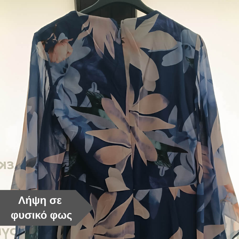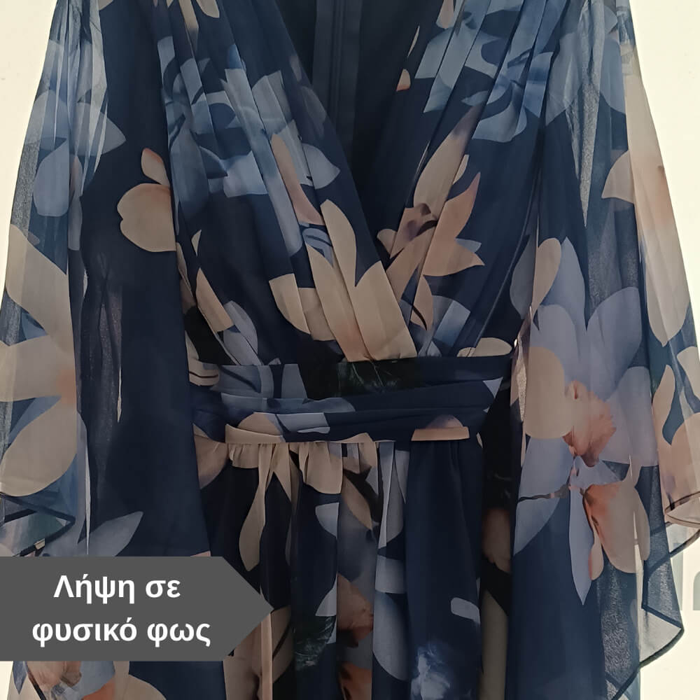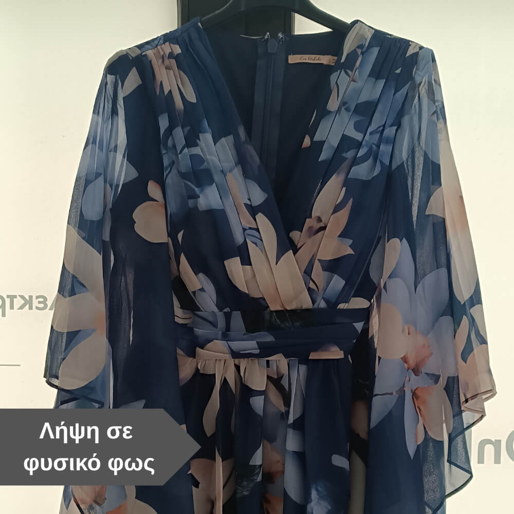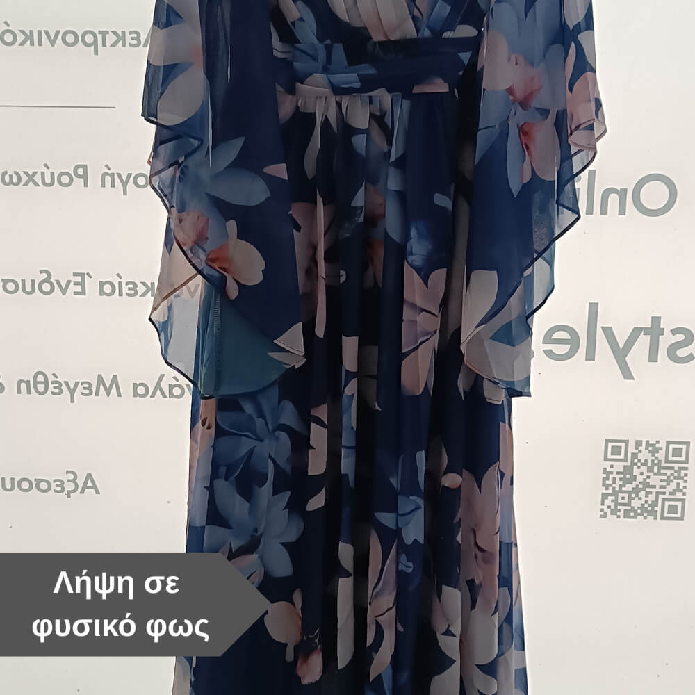 Με το maxi floral μπλε φόρεμα επενδύεις σε ένα κομμάτι που απογειώνει κάθε επίσημη εμφάνιση. Το floral print δίνει ρομαντική αισθητική, ενώ το βαθύ μπλε προσθέτει φινέτσα. Επιπλέον, τα αέρινα διάφανα μανίκια “σπάνε” το κλασικό και κάνουν το look πιο ιδιαίτερο. Έτσι, κρατάς ισορροπία ανάμεσα σε elegant και boho romantic διάθεση.