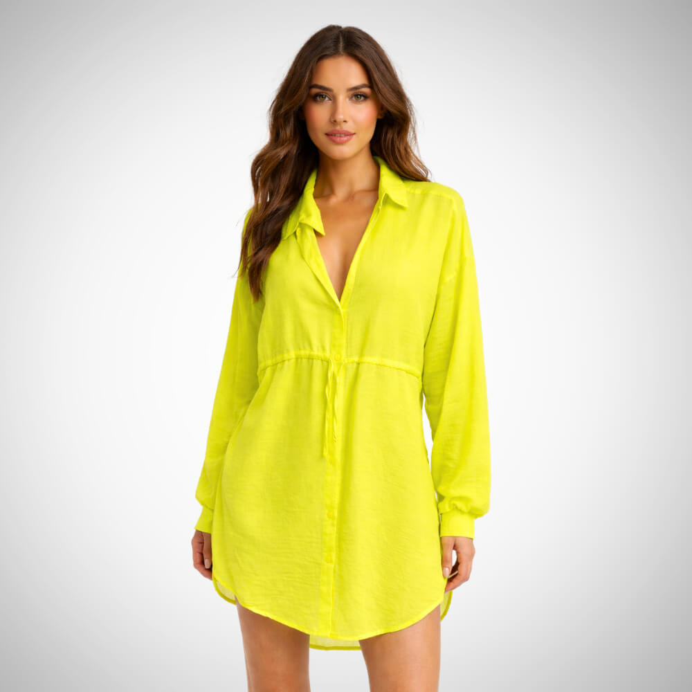 Με το mini φόρεμα Neon Lime με κουμπιά επενδύεις σε άνεση και διαχρονικό στυλ. Διαθέτει κλασικό γιακά, κουμπιά σε όλο το μήκος και μακριά μανίκια, ώστε να το φορέσεις σε πολλές περιστάσεις. Επιπλέον, η χαλαρή εφαρμογή δίνει ολοκληρωμένη εικόνα χωρίς να πιέζει. Έτσι, το προσθέτεις εύκολα στην καλοκαιρινή γκαρνταρόμπα σου.