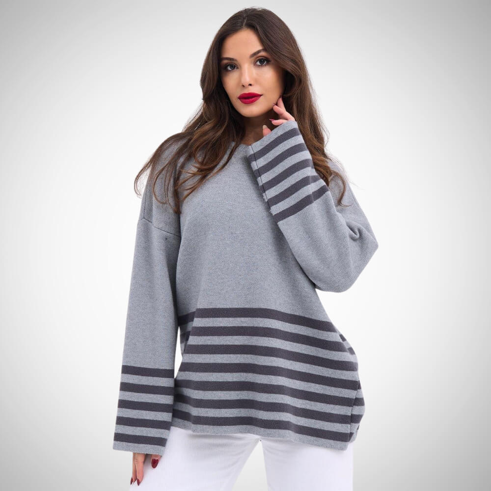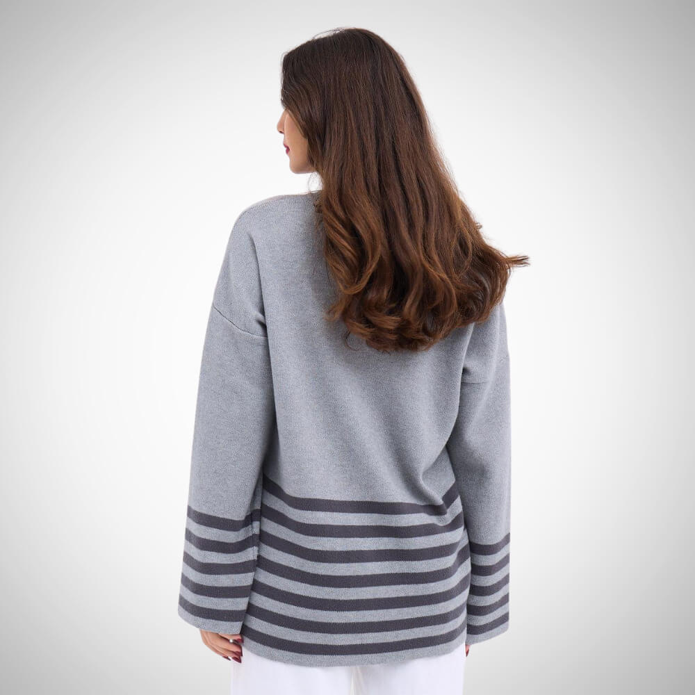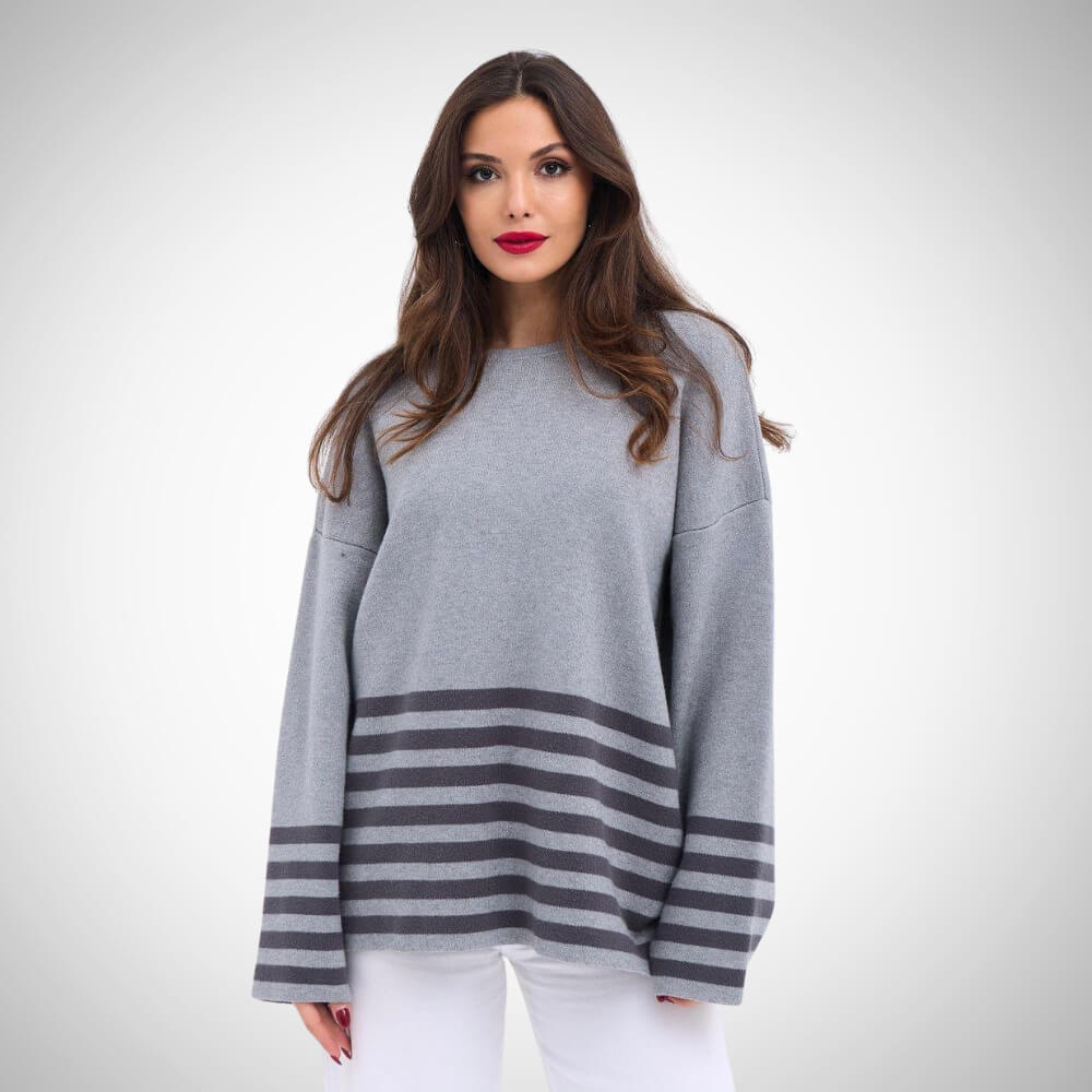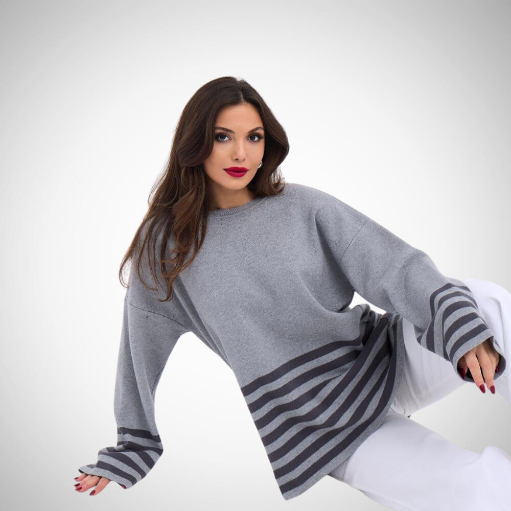 Μπλούζα γκρι πλεκτή ριγέ oversized | Suga Style