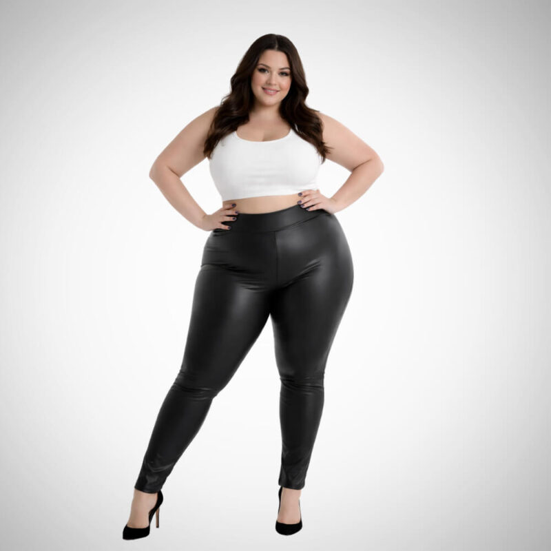 Με το plus size κολάν τύπου δερμάτινο επενδύεις σε ένα εντυπωσιακό basic που μπορείς να φορέσεις σε πολλές περιστάσεις. Το ύφασμα εφαρμόζει σωστά στο σώμα, ενώ παράλληλα διατηρεί κολακευτική και θηλυκή γραμμή.