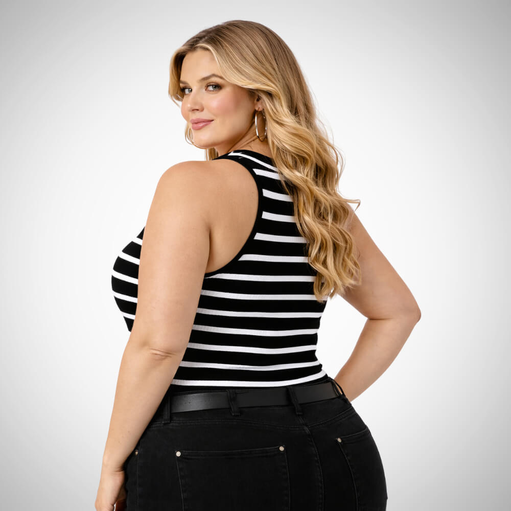 Plus Size Μπλούζα αμάνικη ριγέ σε λευκό μαύρο | Suga Style