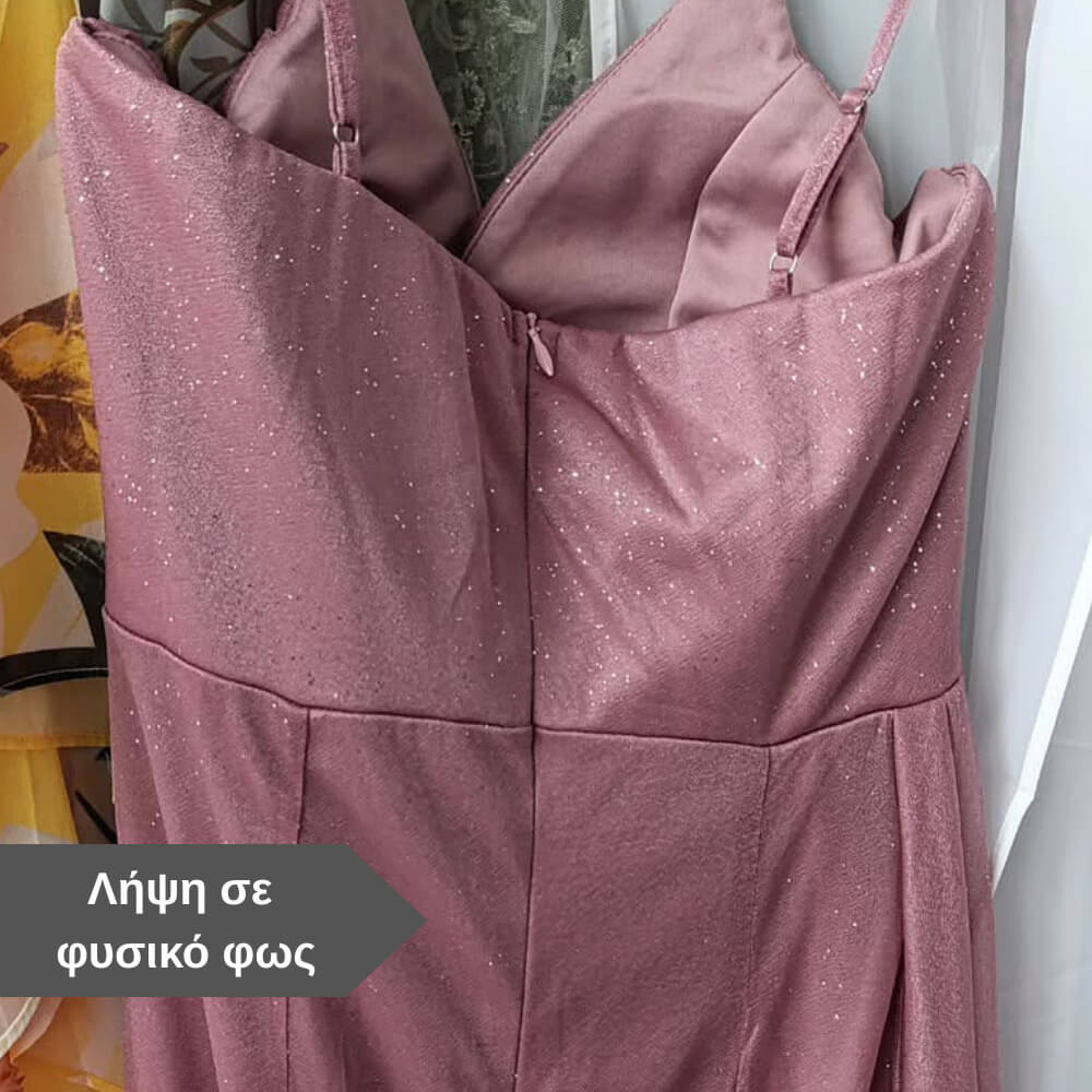 Επιπλέον, οι λεπτές τιράντες και η εφαρμοστή γραμμή αναδεικνύουν τη σιλουέτα, άρα δείχνεις πιο sleek. Επίσης, τα διακριτικά στρας προσθέτουν λάμψη σε όλο το φόρεμα, ενώ κρατούν ισορροπία και δεν βαραίνουν το αποτέλεσμα.