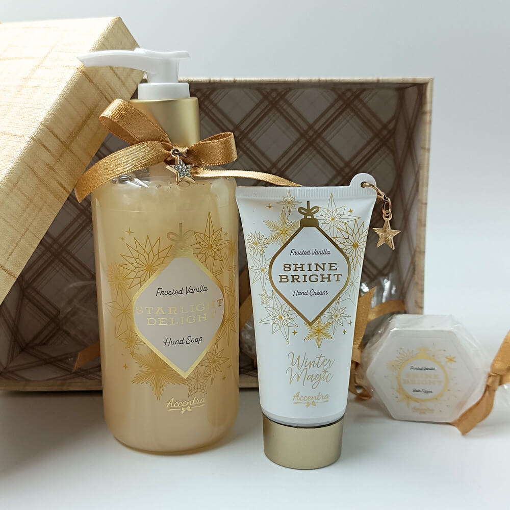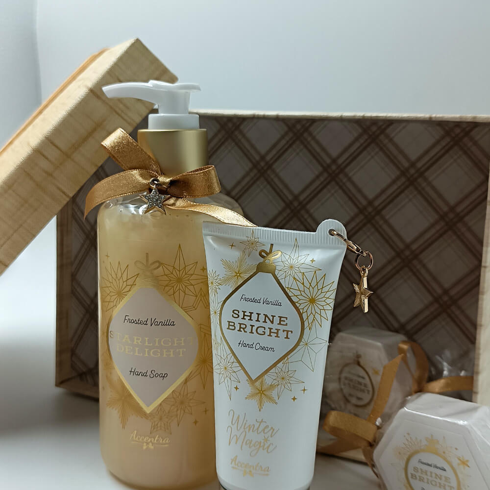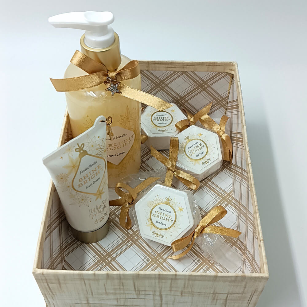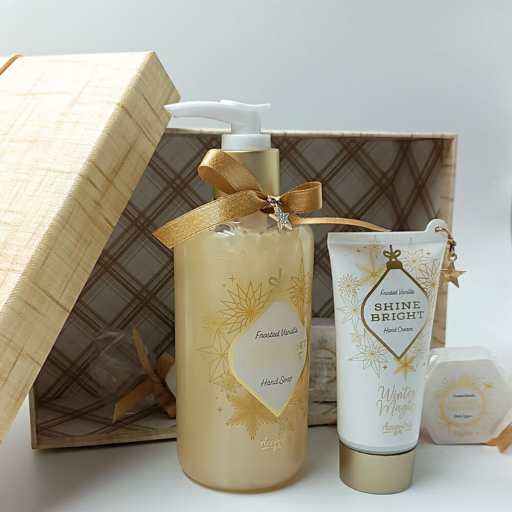 Το σετ είναι συσκευασμένο προσεκτικά σε κουτί πολυτελείας με αισθητική που φανερώνει γιορτινό χαρακτήρα και όχι μόνο, τέλειο για να το χαρίσετε ή να το απολαύσετε μόνοι σας σε στιγμές χαλάρωσης. Το άρωμα βανίλιας δίνει μια ζεστή, γλυκιά νότα όπως ακριβώς θα έπρεπε να είναι τα συναισθήματα μας για τα αγαπημένα μας πρόσωπα.