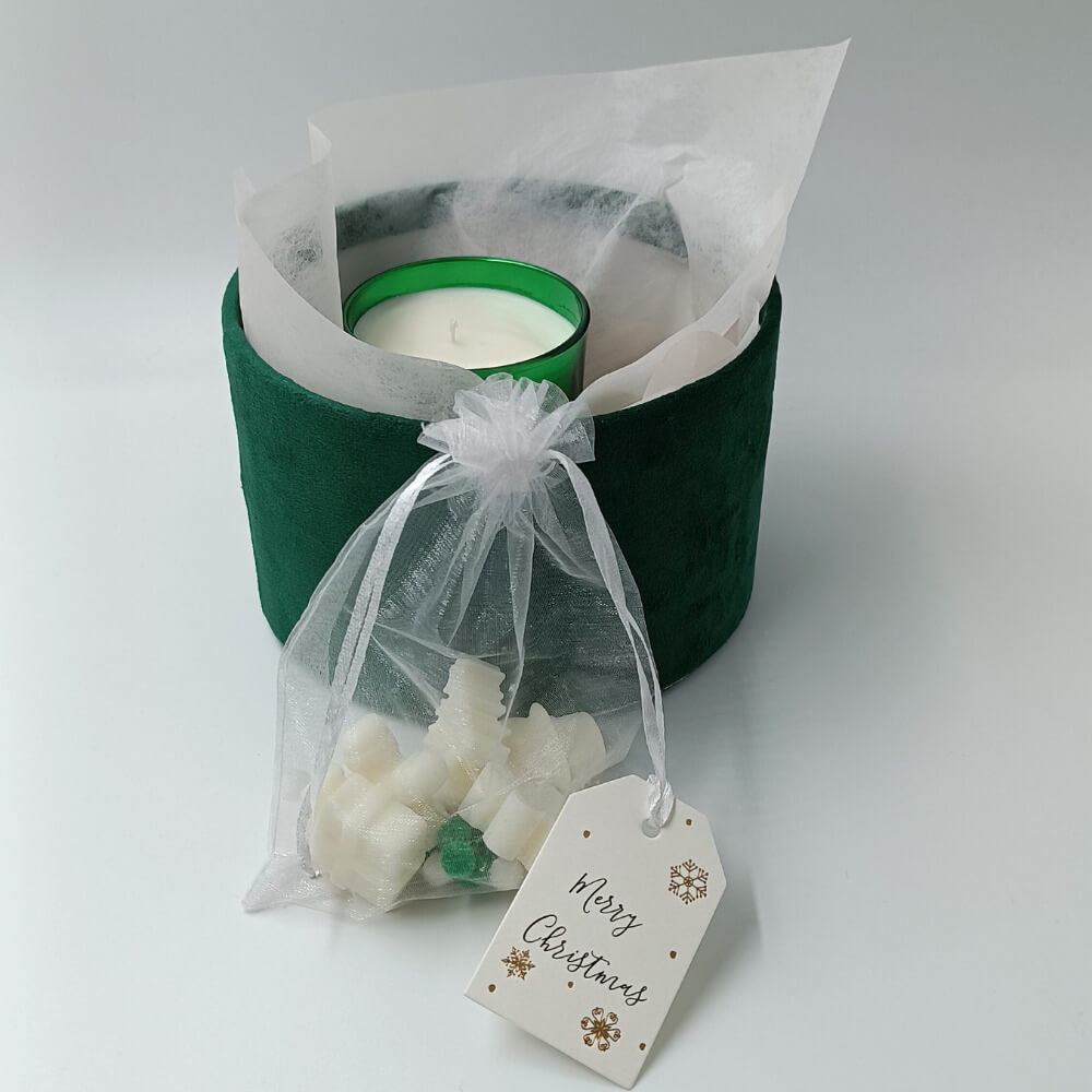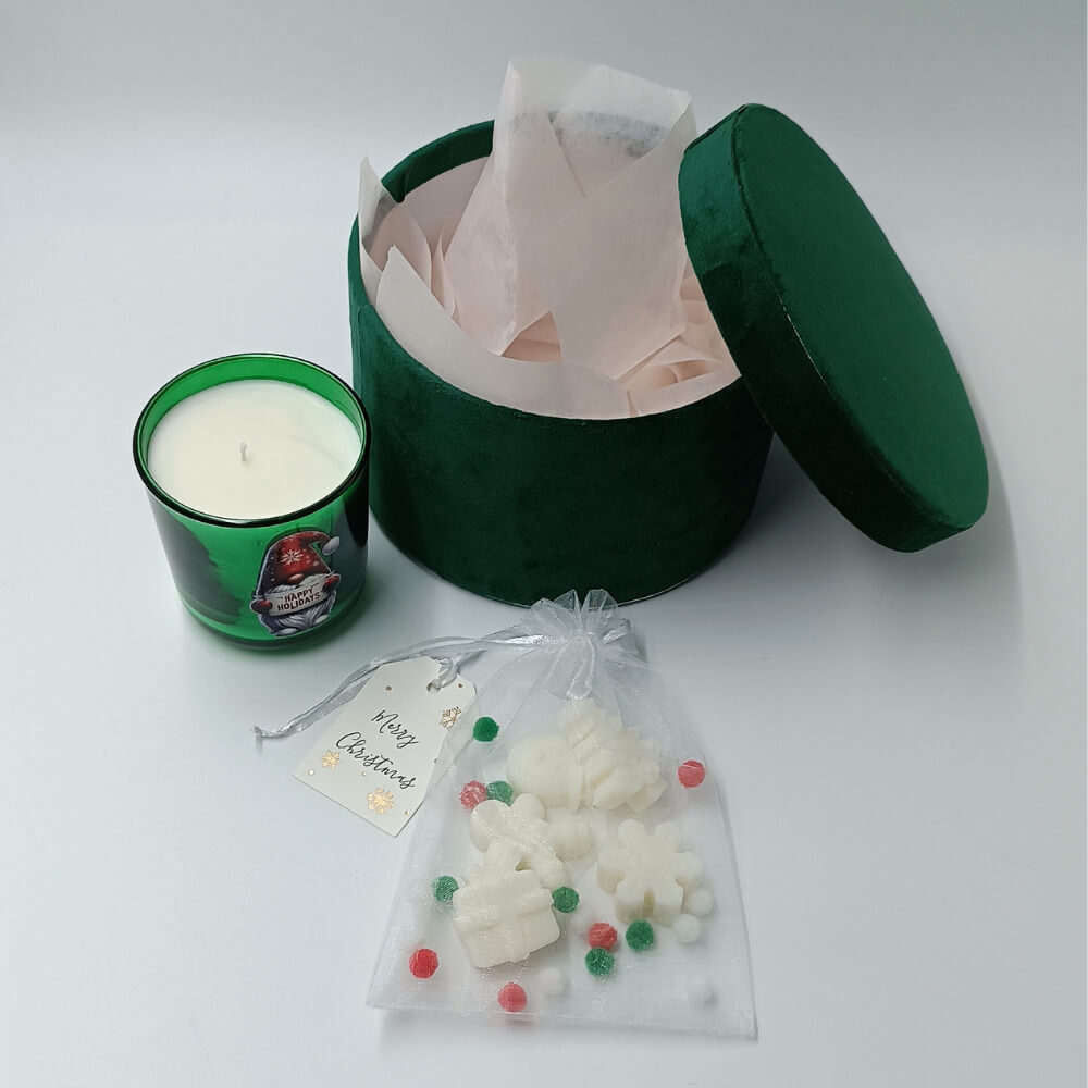 Ζήστε τη μαγεία των γιορτών με αυτό το premium Δώρο Σετ Πολυτελείας, ιδανικό για να προσφέρετε χαρά και ζεστασιά στα αγαπημένα σας πρόσωπα. Το σετ περιλαμβάνει ένα εντυπωσιακό σκούρο πράσινο βελούδινο κουτί υψηλής αισθητικής (διάμετρος 17 εκ., ύψος 10,5 εκ.), που προσθέτει κομψότητα σε κάθε χώρο.