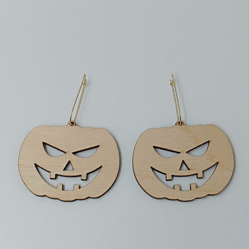 Ξύλινα σκουλαρίκια κολοκύθες Halloween με χάραξη ToXylo