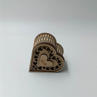 Το ξύλινο κουτί σε σχήμα καρδιάς με καπάκι LOVE είναι ένα κομψό και συναισθηματικό αντικείμενο, ιδανικό για να φιλοξενήσει μικρά δώρα, κοσμήματα, σοκολατάκια ή προσωπικά ενθύμια. Κατασκευασμένο από φυσικό ξύλο, με περίτεχνα κοψίματα καρδιών και χαραγμένη τη λέξη LOVE, συνδυάζει ρομαντική αισθητική και πρακτικότητα.