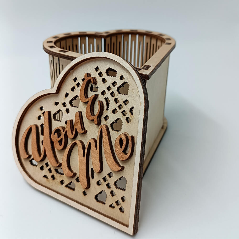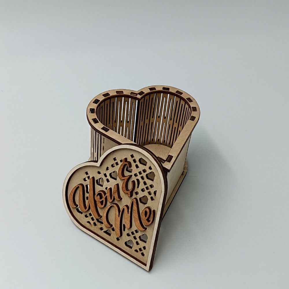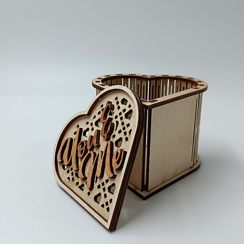 Ξύλινο Κουτί Καρδιά “You & Me” Δώρο Αγάπης | ToXylo