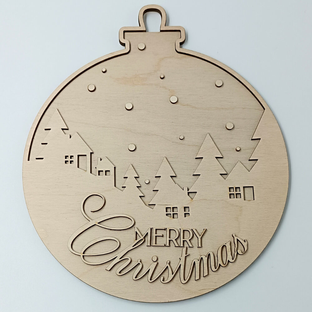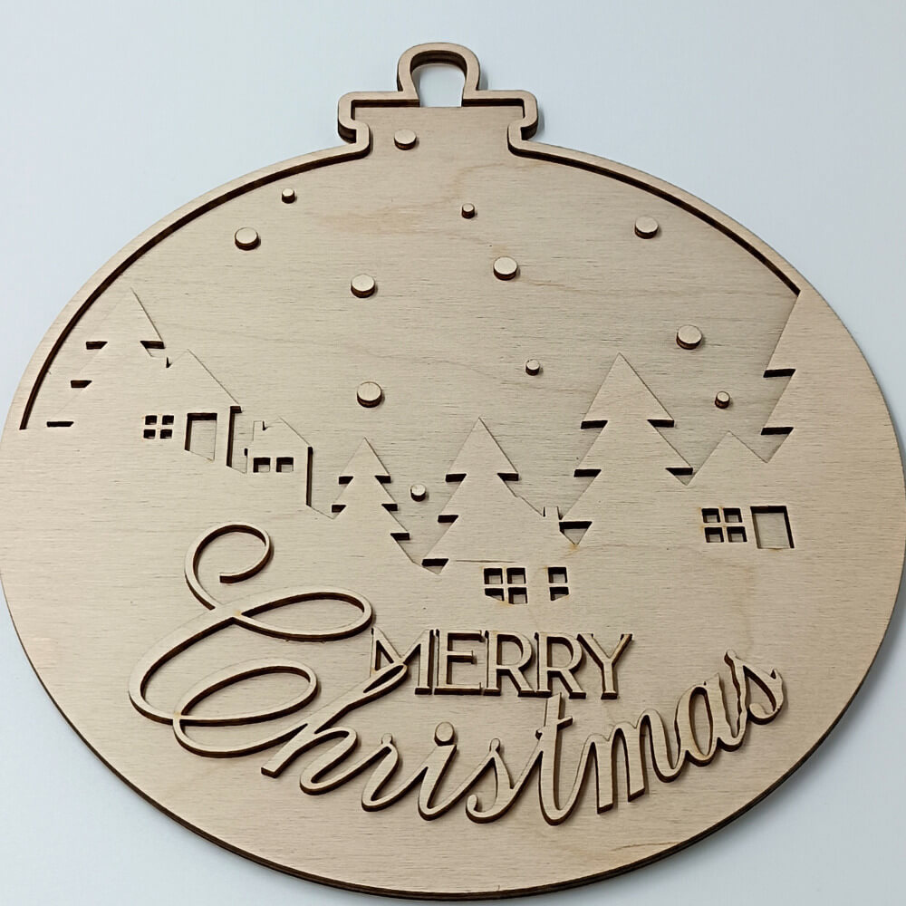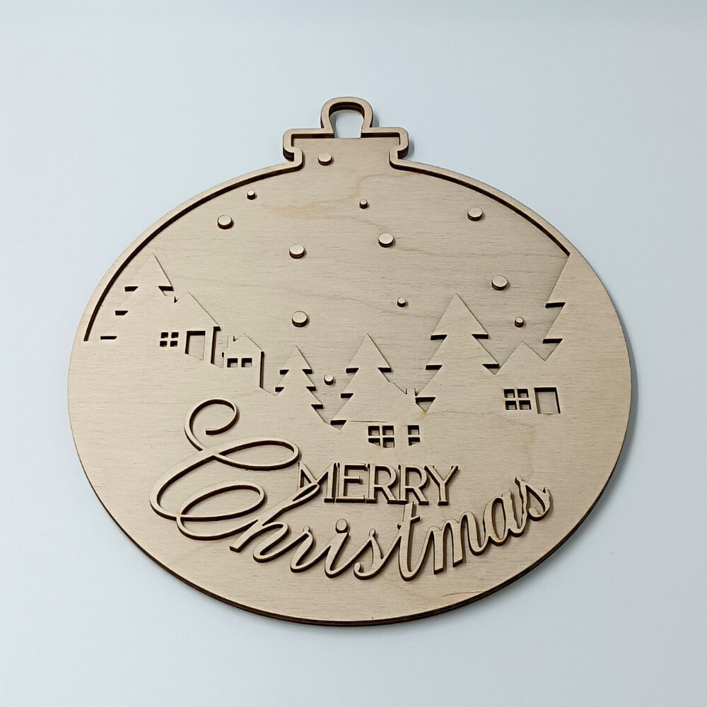 Φέρτε τη γιορτινή μαγεία στο σπίτι ή το κατάστημά σας με το ξύλινο χριστουγεννιάτικο διακοσμητικό μπάλα “Merry Christmas” από ToXylo. Με κομψό σχέδιο κοπής laser που απεικονίζει χειμωνιάτικο τοπίο με δέντρα, σπιτάκια και νιφάδες χιονιού, δημιουργεί μια ζεστή και παραμυθένια ατμόσφαιρα.